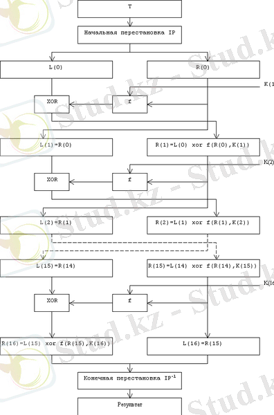 1 сурет. DES алгоритмінің жалпы шифрлеу схемасы.