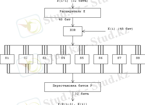 Ендігі кезекте f(R(i-1), K(i) ) функциясының шифрлеуін қарастырамыз. Ол 3 суретте схемалық түрде көрсетілген.