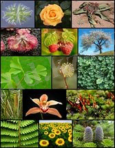 Өсімдіктердің 375 000-ға жуық түрі бар. Өсімдіктер тұқымтобының ең үлкені - гүлдейтін немесе жабық тұқымды өсімдіктер. Олардың 250 000-нан астам түрі бар. Өсімдіктер күн сәулесінің көмегімен (фотосинтез) өз қорегін табады. Саңырауқұлақтар бұрын өсімдіктер қатарына жатқызылатын, алайда өз қорегін өндірмейтін болғандықтан, қазір олар жеке класқа жіктелген. Олардың 100 000-ға жуық түрі бар.