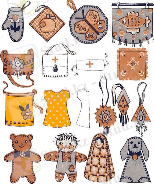 Әр түрлі табиғи материалдардан істелген бұйымдардың - икебана, сабаннан жасалған бұйымдар, аң, құстар пішіндері, топ бөлмесін безендіру, бір-біріне жіне мерекелік сыйлықтар дайындаудың тәрбиелік мәні зор.