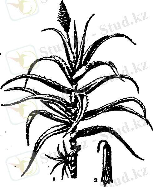 Алоэ туысы (Аlое) осы тұқымдастың ішінде ерекше орын алады (243-сурет) . Оның 250-дей түрі бар. Табиғи жағдайда оңтүстік Африка мен Мадагаскар аралында өседі. Гүлсерігі біріккен жапырақшалардан тұрады, көп жағдайда құстармен тозаңданады. Ағаш тәрізді алоэ, немесе жүзжылдық. (алоэ древо-видное, или столетник- Аlое аrbоresсеns) - көпжылдық мәңгі жасыл шөптесін суккулент өсімдік (шыққан жерінде 4 м биіктікке дейін жететін) . Жапырағы өте жуан, етжеңді, қылыш тәрізді болып келеді. Өте ерте гүлдейді. Гүлдері қызғыштау- сары түсті, қоңырау формалы болып келеді. Гүлшоғыры өсімдіктің жоғарғы жағында шашақ түзеді. Бірақта А. аrbоrеscens өте сирек гүлдейді-жүзжылдық ("столетник") деген аттың өзі соған байланысты қойылған. БОР-да сәндік өсімдік ретінде бөлмелерде өсіреледі. Мәдени жағдайда Закавказьеде өсіреледі.