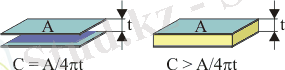 б) сол конденсатор пластиналардың арасында изоляцияланған қабаттар бар.