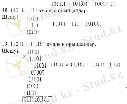 17. 1011, 1 + 101, 01 амалын орындаңдар.