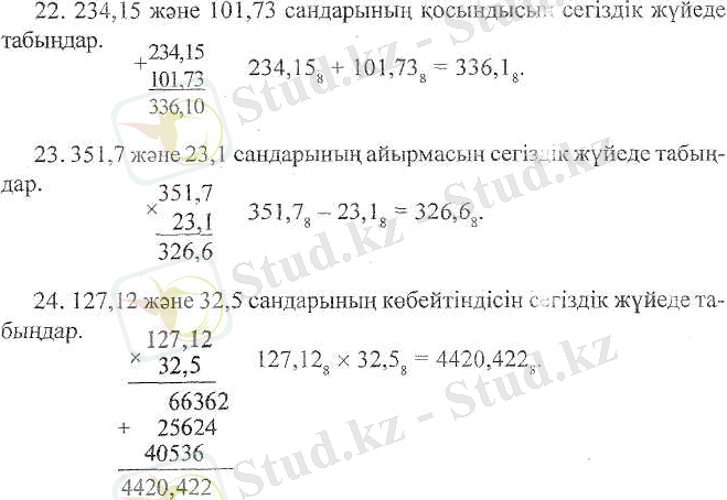 26. Сегіздік негіздегі сандарға косу және азайту амалдарын колданыңдар: