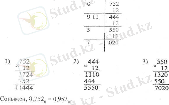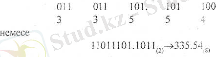б) осы санды 8-дік жүйеге көшіріп жазу үшін де жоғарыдағы ереже пайдаланылады, бірак онда үш-үш орыннан бөлінеді: