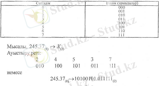 1. Сегіздік және екілік жуйелердің арасындағы байланыс.