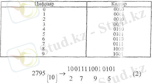 1. Екілік негізде берілген: