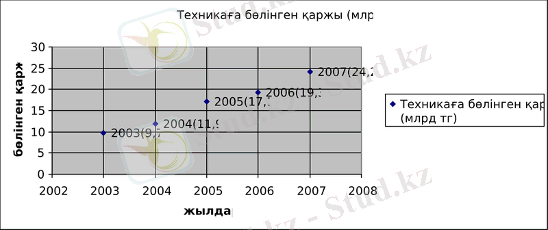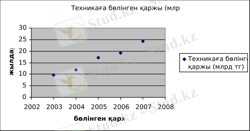Жоғарыда берілген кесте мен диаграммадан ауыл шаруашылығын техникамен жабдықтауға бөлінетін қаржы жылдан жылға өсіп отырғанын көруге болады.