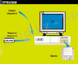 Вирустың жүйеге кіруінің бірнеше жолдары бар. Олар: дискета, ПО шығаратын CD-ROM, жүйе мен интерфейс немесе модемді құрылыс, электронды почтаны қабылдау кезіндегі интернет жүйесі. (1-сурет)