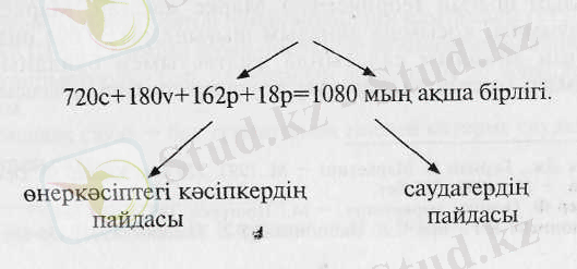 Барлығы 927 мын адам бірлігі болады. Бүл жағдайда өнеркәсіп кәсіпкерінде 162 мың ақша бірлігі қалады (мұны біз жоғарыда қарастырдық), енді 18 мьщ ақша бірлігін саудагер- деддалға тауарды өткеруте жасаған қызметі үшін беру кажет, ал калған акша бөлігі кәсіпкерлік табыс деп аталады.