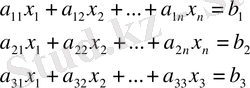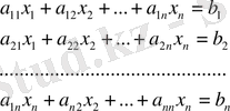 Онда n сызықты алгебралық теңдеулер мен n белгісіздері бар жүені жазайық: