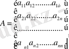 элементтер таблицасы, ол n қатарлар мен n бағандардан тұрады, n ретті квадраттық матрица деп аталады. Егер осындай матрица mn эллементтерден құралса, m қатар мен n бағандардан құралса, онда ол тікбұрышты матрица деп аталады.