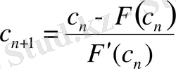 Equation. 3 және тағы басқа нүктелеріне жүргізілген жанамалар мен абцисса осімен қиылысу нүктелері болып, келесі жақындаулары табылады. n+1 жақындауының формуласы мынандай болып келеді: