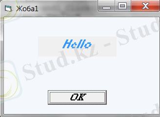 Енді осыларды пайдаланып жоба қру жолдарын қарастырайық. Жоба жасау кезінде формаға керекті объектілерін қойып, қасиеттерін өңдеу керек. Мысалы: Формаға Label және Command объектілерін қойып, Caption, Font, ForeColor қасиеттерін өңдейміз. (2-сурет) . Label1. Caption = "Hello", батырманы шерткенде нәтижеде Label1 объектісіне Hello сөзі шығады (3-сурет) .