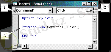 Код терезесі. Басқару элементінің немесе форманың қасиеттерін