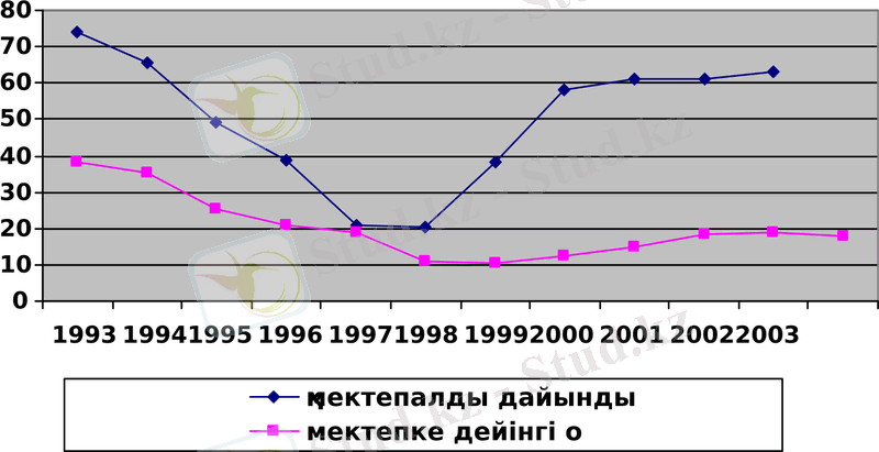 1999 жылы Қазақстанда балалардың міндетті мектепалды дайындығы еңгізілді, бұл балаларды мектепалды дайындық бағдарламасын қамтуға әсер етеді (1 диаграмма) .