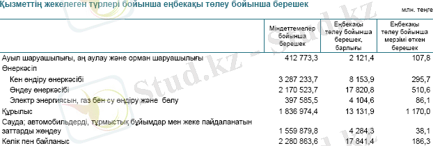 Кәсіп орындардың берешегі 2009 жылғы 1 шілдеге еңбңекақы төлеу бойынша берешек республиканың кәсіорындарда 2008 жылғы тиісті кезеңмен салыстырғанда 32, 3%-ға азайып 79, 5 млрд теңгені құрады, одан мерзімі өткен берешек 2, 7 млрд теңге сомасында қалыптасты немесе еңбекақы төлеу бойынша жалпы берешектің 3, 4%-ы.