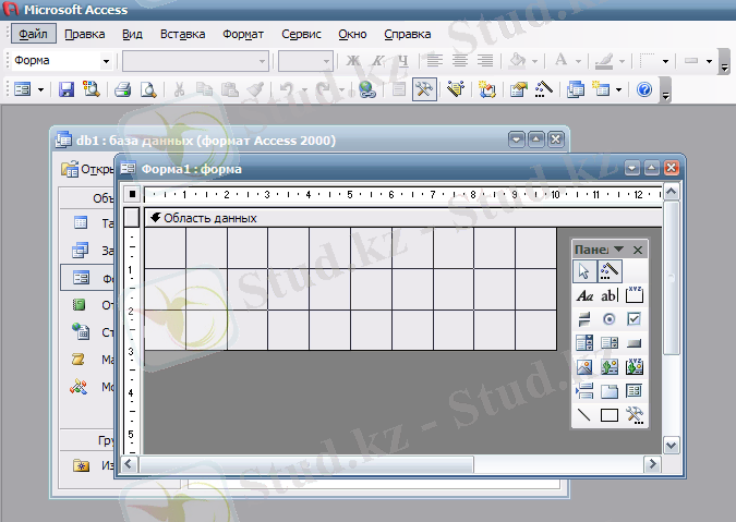 Форманы жасау кезінде қажетті іс- әрекеттер жасау үшін Конструктордын аспаптар тақтасын қолданамыз. Оны іске қосу Түр - Аспаптар тақтасы командасы арқылы жүзеге асады. Онда Формалар конструкторы тізімін тандап, Баптау батырмасын басу керек. Экранның сол жағында орналасқан Конструктордың аспаптар тақтасындағы негізгі батырмаларын атап шығайық :