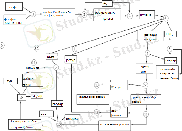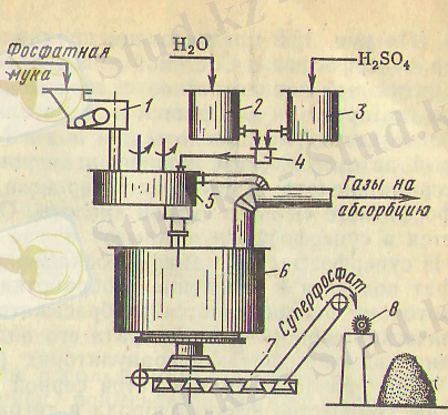 12. 2-суретте суперфосфат өндірісінің түбегейлі сызбанұсқасы көрсетілген.