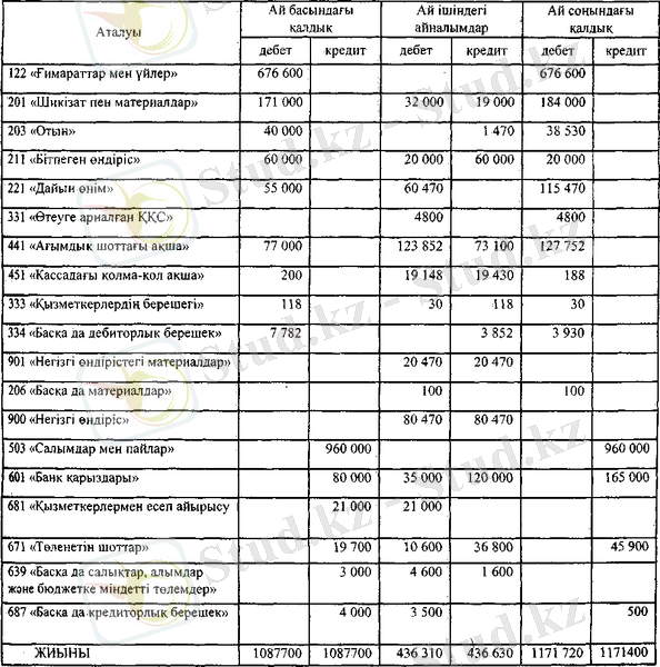 - Жиьштық дебет айналымы жиынтық кредит айналымына теңесуі тиіс.