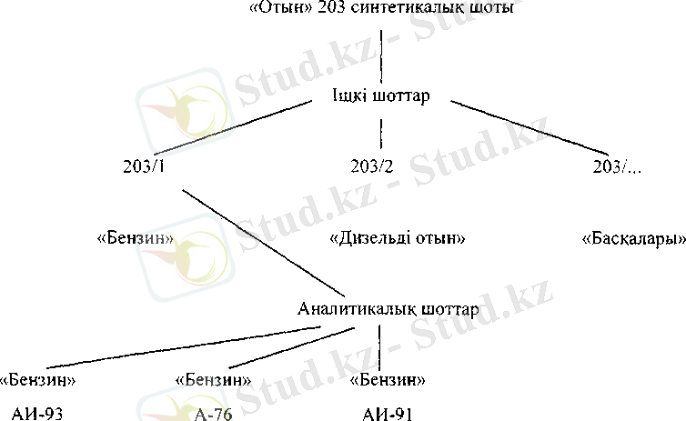 Мысалы, «Отын» 203 шоты. Бұған «Бензин» 203/1, «Дизельді отын» 203/2 ішкі шоттар ашуға болады.