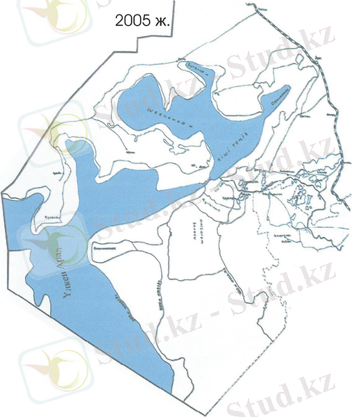 Арал теңізінің деңгейі төмендегені соншалық, 1987 жылы үлкен және кіші теңіздерге бөлінуі себепті, екеуінің арасында жал құм жалаңаштанып, табиғи бөгет пайда болды. Біздің мәліметіміз бойынша, Арал теңізінің