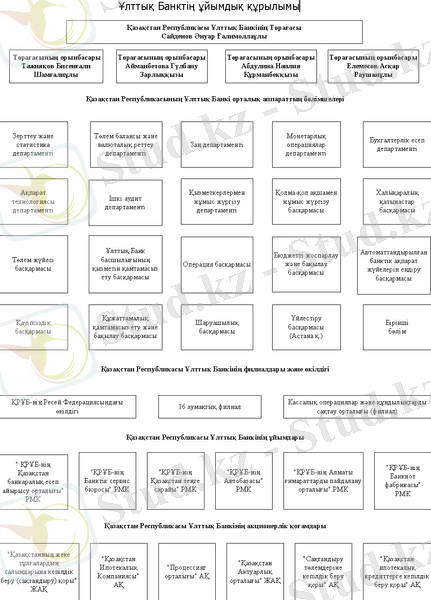 Банктер қызметіне қадағалау және ішкі ведомствалық бақылауды банк жүйесінің жоғары буыны - Ұлттық Банк өзінің Қадағалау департаменті арқылы жүзеге асырады.