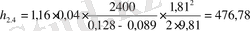 - Диаметрі 89 мм жуу құбырларында сұйықтың қозғалысында гидравликалық қарсыласу кезіндегі арынның жоғалуын мына формула бойынша анықтаймыз: