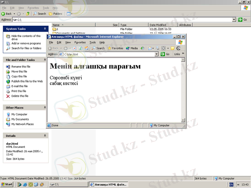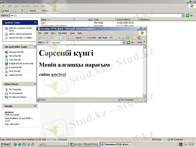 <TITLE> Алғашқы HTML файлы</TITLE>