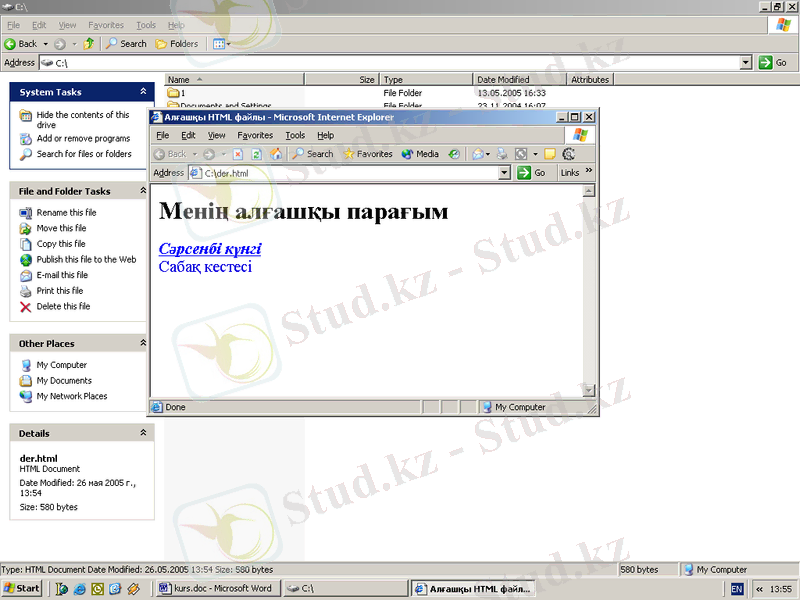Сондықтан курстық жұмыста HTML тілдің құрылымы мен онда құжаттарды форматтау ережелері, құжаттарды орналастыру принциптері, гиперсілтемелер жасау мүмкіндіктері мен WEB бетін құру негіздері қарастырылады.