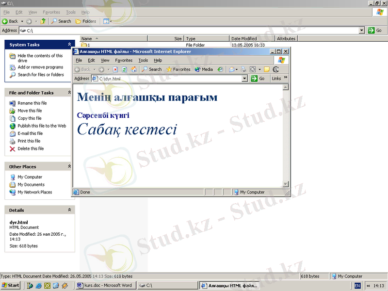 <TITLE> Алғашқы HTML файлы </TITLE>