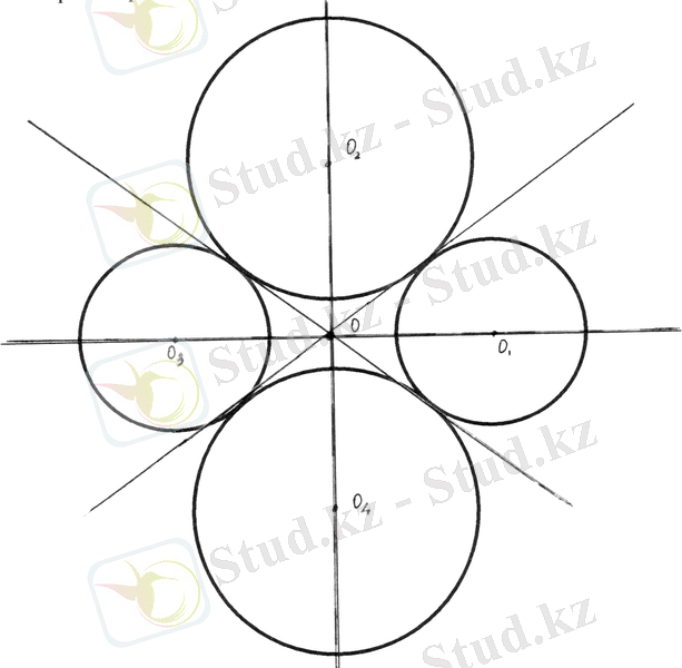 1-есеп. Берілген үш түзуді де жанайтын шеңберлер жүргізу.