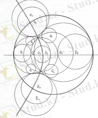 г) белгілі екі шеңбердің қиылысу нүктелерін салу /егер бүл нүктелер