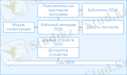 ISM ISDN желісі үшін программалық интерфейспен қамтамасыз ететін және деректерді шақыру, тарату функцияларымен басқарады және қатенің себебін анықтауға мүмкіндік беретін, аппаратты-тәуелсіз реентерабельный ішпрограммаларды елестеді.