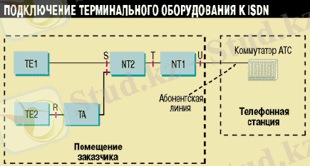 8-сурет. ISDN стандартының құрамына кіретін құрылғылар мен функционалды топтар және тірек нүктелері.