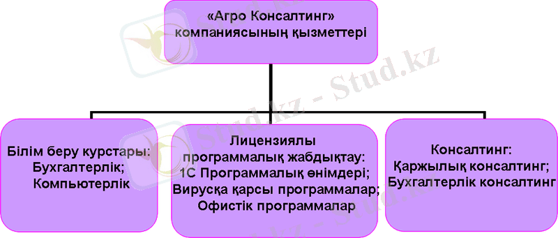 «Агро Консалтинг» компаниясының қызметтерін дамыту үшін фирма басшылығы әртүрлі деңгейдегі оқу курстарын ұйымдастыруды қолға алды. Фирма атқаратын функциялардың барлығы 1. 2-суретте келтірілген.