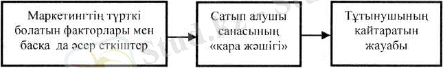 Сатып алушы санасының «қара жәшігінде» маркетингтік ынталандырулар және басқа да факторлар ықпалымен тауарды сатып алу туралы шешім қабылданады.