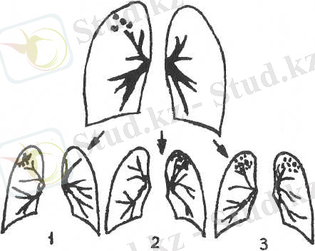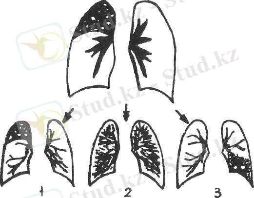 3 - екіжакты зақымдану; ошакты туберкулез, диссеминацияланған туберкулез.