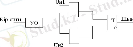 Шекті күшейткіш шығысындағы кіріс сигналы U екі схема кірісіне беріледі, бұл схемалардың екінші кірісіне екі импульс тізбектері беріледі: U н1 және U н2 . Демодульді импульстар Т триггер шығысынан шешіледі.
