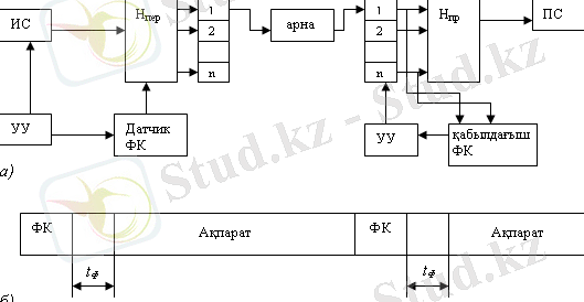 6 - сурет Маркерлік емес әдісте синхронизациядағы байланысты ұйымдастыру (а) және синхронизация құрылғысының жұмысының уақыт бойынша диаграммасы (б) .