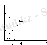 Өндірістік функция мен өндіріс факторларының алмасу заңын графикпен түсіндіріп көрелік. Айталық еңбек пен капиталдың әр қилы үйлесімділігін пайдалана отырып, 100 өлшемге тең бірқатар өнім өндіруге болады, осы жағдайда жұмысшының жалақысы 2 доллар, өндіріс құрал-жаб-дықтарының бір өлшемі 3 долларға тең болды деп ұйғаралық. Өзімізге белгілі көрсеткіштерді жазып өрнектейік.