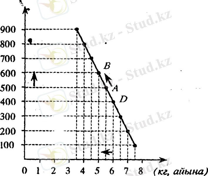 1-кестеде берілген көрсеткіштерді координаттар өсіне түсіріп, бейнелеуге де болады. Бұл қисықты D әрпімен белгілеп, оны сұраныс қисығы деп атаймыз.