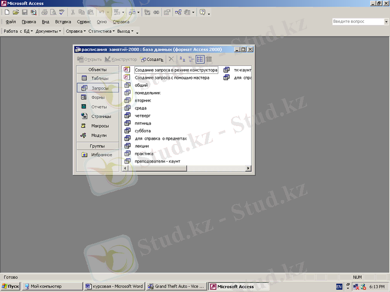 Microsoft Access 2000 негізінде сабақ кестесі мәліметтер базасын жобалау және жүзеге асыру