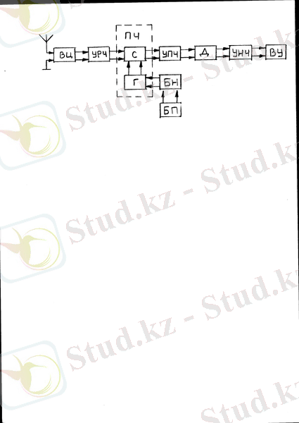 Курстық жұмыстың бұл бөлімін орындау үшін құрамы келесідей элементтерден тұратын УКВ супергетеродиндік қабылдағышының құрылымдық сұлбасын қарастырамыз (6 - сурет) .