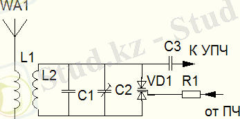 Біз құрастырған радиоқабылдағыш құрылғының кіріс тізбегі антенна мен РЖК-мен байланыс конденсаторынан тұрады. Антеннаның контурға әсерін азайту үшін байланыс конденсаторының сыйымдылығын аз етіп алады (ондағы пФ) .