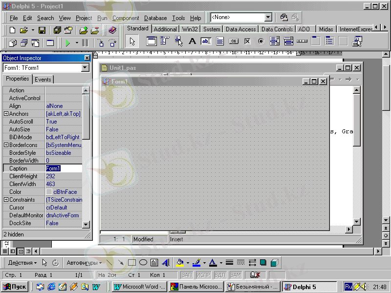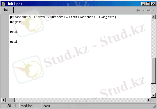 - Программа кодының терезесі (Unit1. pas) .