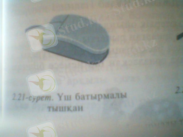 Тышқанның бірнеше түрі болады: үш батырмалы (2. 21-сурет), екі батырмалы(2. 22-сурет) және оптикалық. Қазіргі кезде екі батырмалы тышқан жиі пайдаланылады, себебі ортадағы батырма жұмыс кезінде көп пайдаланылмайды.