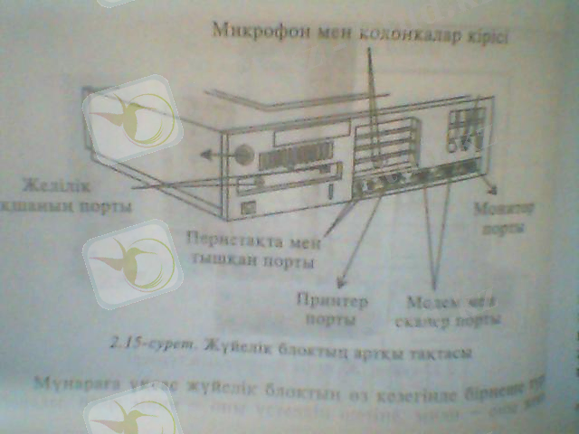 Компьютердің артқы тақтасында негізгі (монитордың, пернетақтаның, тышқанның порттарын) және қосымша құрылғыларды(принтердің, модемнің, сканердің, микрофонның порттарын) қосатын порттар және кірістік құрылғылар орналасқан (2. 15-сурет) .