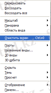 View (Түр) (1. 5-суретті қараңыз) құлап ашылатын меню ішіндегі Clean Screen (Экранды тазалау) пункті қолданушы интерфейсінің тағы да бір жаңа қызықты басқару инстру-менті болып табылады. Осы пунктің көмегімен уақытша панельдерді алып тастаудың есебінен графикалық экран-ның жұмыс аймағын үлкейтуге болады. Бұл жағдайда құ-лап ашылатын меню қолданушыға қолайлы болып қалады. Clean Screen (Экранды тазалау) пунктін қайта таңдау AutoCAD жүйесінің терезесін қалыпты түрге келтіреді. Графикалық экран қалыптарының сурет аралықтарымен же