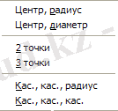Шеңберді салу үшін CIRCLE (ШЕҢБЕР) командасы қолданылады. Команданы ша-қыру үшін Draw (Сурет салу) панеліндегі батырма немесе Draw (Сурет салу) құлап ашы-латын менюдегі Circle (Шеңбер) подменюі арқылы шақырылады. Оның алты пункті бар (1. 5-сурет) . Circle (Шеңбер) командасын ша-қырғанда AutoCAD сауал шығарады: Specify center point for circle or [3P/2P/Ttr (tan tan radius) ] : (Шеңбердің центрі немесе [3Т/2Т/ККР (кос кос радиус) ] : ) . Егер осы сауалға жауап ретінде нүкте көрсетсе-